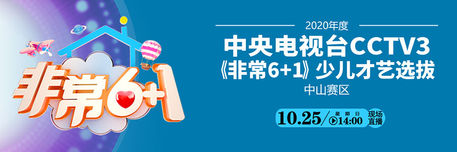 2020年度中央電視臺(tái)CCTV3《非常6+1》少兒才藝選拔中山賽區(qū)開(kāi)賽,10月25日下午2點(diǎn),中山日?qǐng)?bào)全程直播,敬請(qǐng)關(guān)注