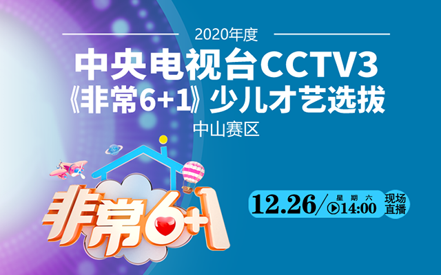 2020年度中央電視臺CCTV3《非常6+1》少兒才藝選拔中山賽區(qū)復賽將于12月26日下午2點舉行,中山日報報業(yè)集團·中山網(wǎng)全程直播,敬請關(guān)注!