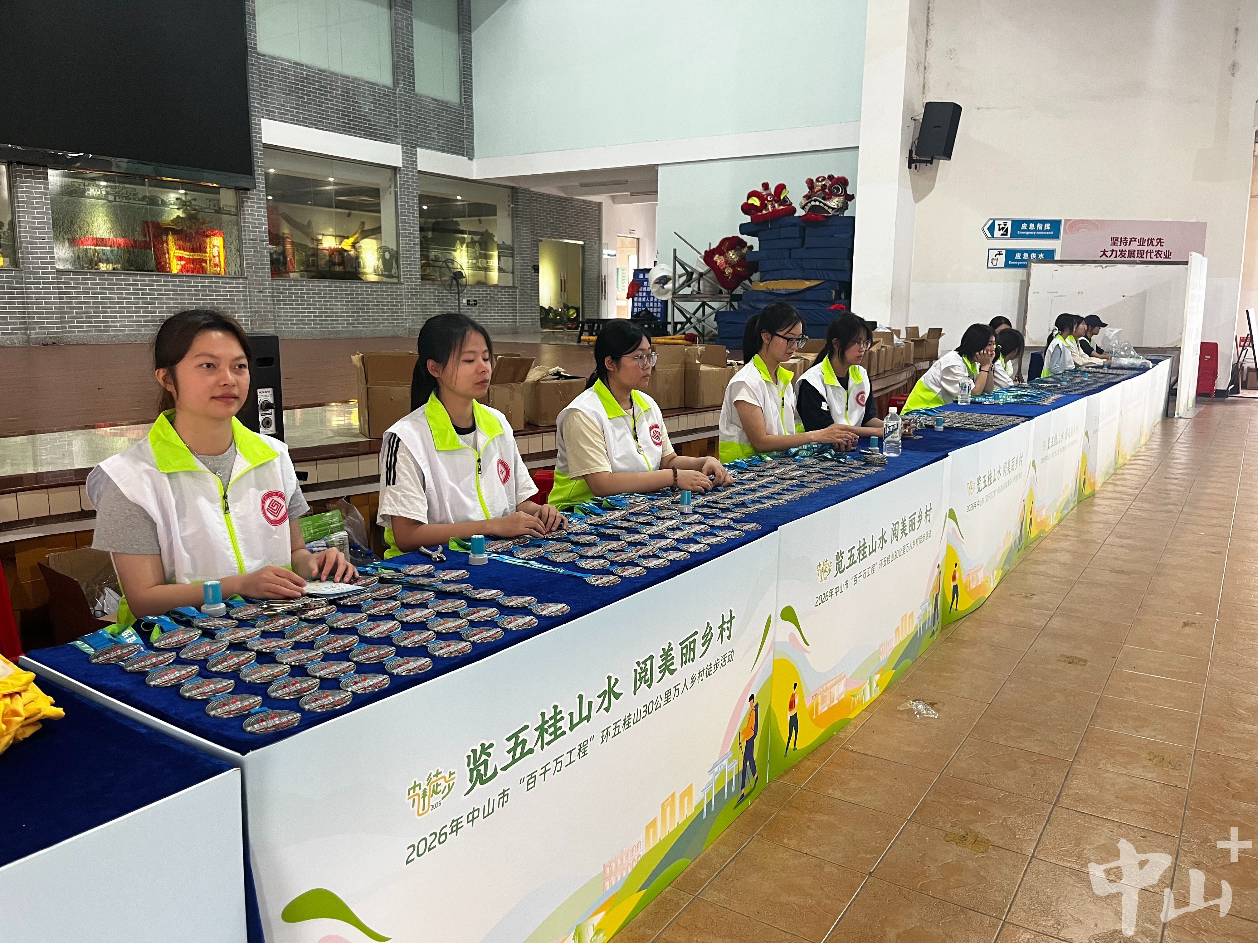 到達(dá)終點的徒步愛好者陸續(xù)步入崖口會館內(nèi)領(lǐng)取活動紀(jì)念章。此次紀(jì)念章設(shè)計緊扣“覽五桂山水 閱美麗鄉(xiāng)村”活動主題,背面刻有“中山徒步2026、覽五桂山水 閱美麗鄉(xiāng)村”字樣。