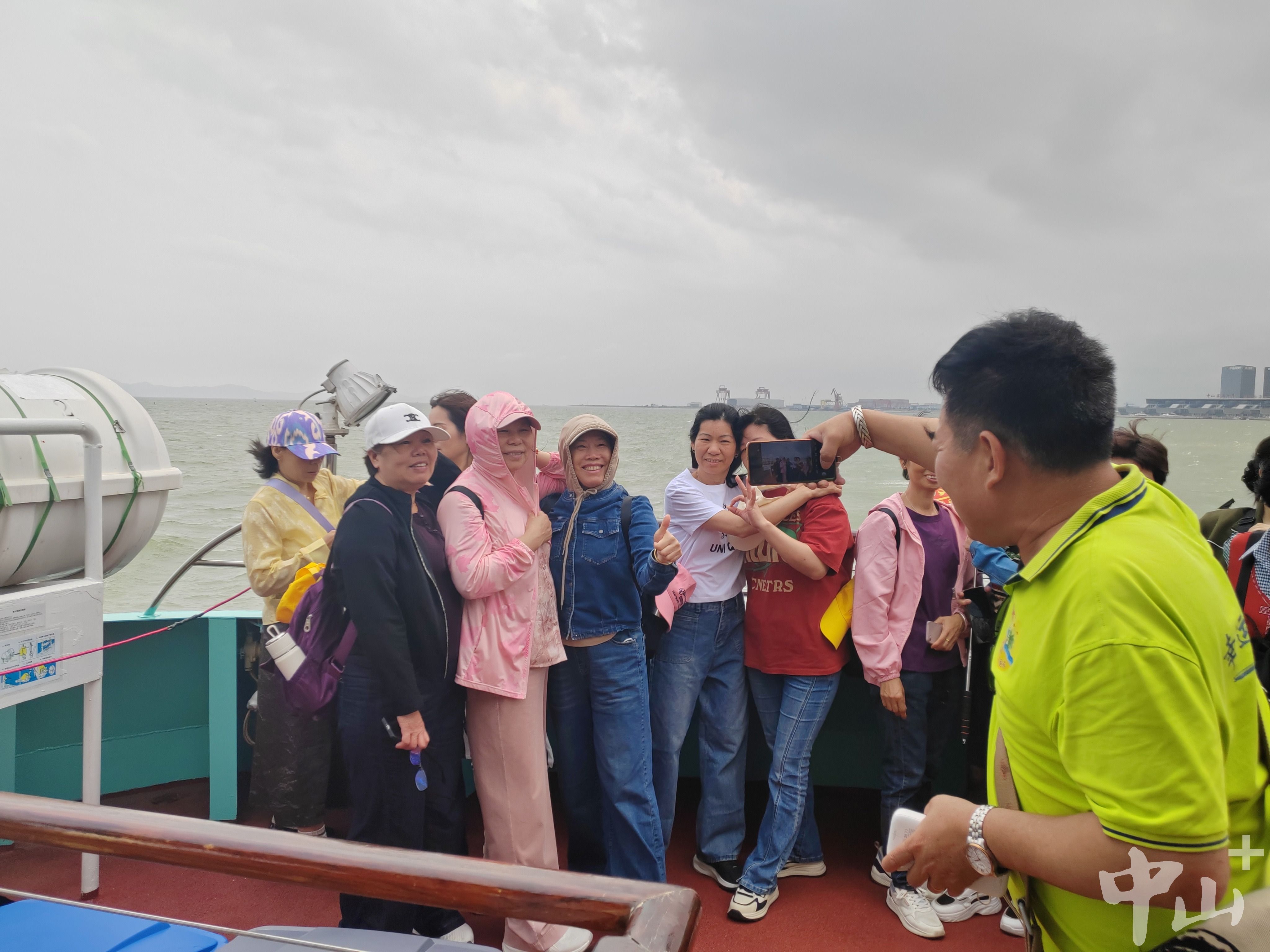 游客在船上拍照留念。記者 蘇鵬蘊(yùn) 攝