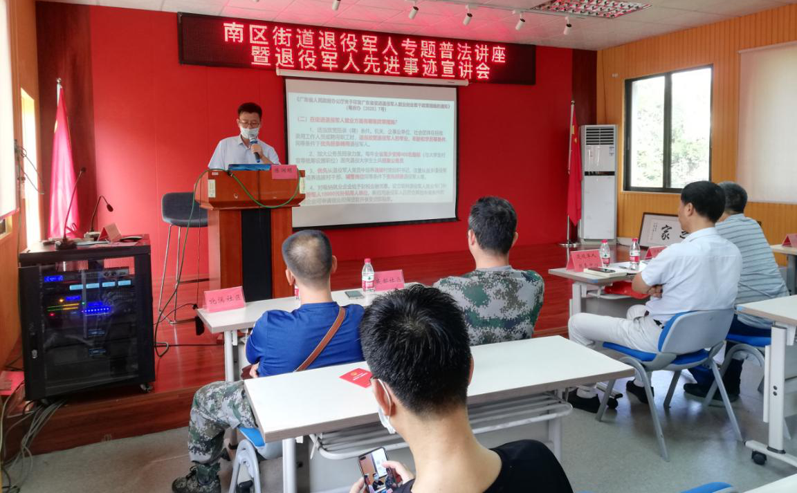 活動邀請南區(qū)街道駐點律師陳潤明現(xiàn)場授課,講解《退役軍人保障法》《民法典》《退役士兵安置條例》等法律法規(guī),對其中涉及的退役安置、就業(yè)創(chuàng)業(yè)、撫恤優(yōu)待、服務管理和法律責任等內容進行了深入講解,切實展現(xiàn)尊法、學法、知法、用法的良好氛圍。