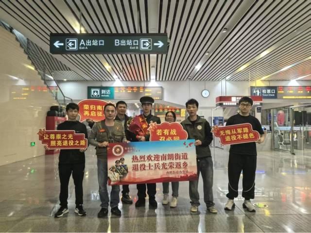 精心組織,讓榮歸之路更有溫度 當(dāng)天,街道退役軍人服務(wù)中心工作人員早早守候在出站口,現(xiàn)場“熱烈歡迎退役士兵光榮返鄉(xiāng)”“榮歸南朗 再啟征程”等橫幅高懸,氣氛莊重而溫馨。當(dāng)身著戎裝、英姿颯爽的退役士兵陸續(xù)走出抵達(dá)通道,等候多時(shí)的工作人員與家屬立即上前,獻(xiàn)上鮮花、披上綬帶,用熱烈的掌聲和親切的問候迎接最可愛的人回家?!靶量嗔?!”“歡迎回家!”一句句暖心話語,驅(qū)散了旅途疲憊,更讓尊崇之光閃耀歸途。 工作人員與退役士兵促膝交談,詳細(xì)詢問服役經(jīng)歷、旅途行程與返鄉(xiāng)規(guī)劃,向他們致以崇高敬意,衷心感謝他們把最美好的青春奉獻(xiàn)給國防事業(yè),用忠誠與擔(dān)當(dāng)守護(hù)萬家安寧。 精準(zhǔn)服務(wù),讓政策落地更有速度 為打通服務(wù)保障“最后一公里”,迎接現(xiàn)場同步設(shè)立政策咨詢點(diǎn),工作人員為每位返鄉(xiāng)士兵送上“政策大禮包”,面對面講解退役軍人優(yōu)待撫恤、就業(yè)創(chuàng)業(yè)扶持、報(bào)到落戶流程、社會(huì)保險(xiǎn)接續(xù)、組織關(guān)系轉(zhuǎn)接、優(yōu)待證辦理等“一站式”服務(wù)事項(xiàng),耐心細(xì)致解答疑問,確保退役士兵“出站即知政策、返鄉(xiāng)即享服務(wù)”,讓暖心服務(wù)貫穿榮歸全程。 “沒想到剛下飛機(jī)就有家鄉(xiāng)人迎接,還送來了這么詳細(xì)的政策指引,太貼心了!”退役士兵們表示,脫下軍裝仍是戰(zhàn)士,回到家鄉(xiāng)將繼續(xù)發(fā)揚(yáng)人民軍隊(duì)聽黨指揮、能打勝仗、作風(fēng)優(yōu)良的光榮傳統(tǒng),盡快轉(zhuǎn)變角色、適應(yīng)新崗,以飽滿熱情投身家鄉(xiāng)建設(shè),在新的征程上再立新功。