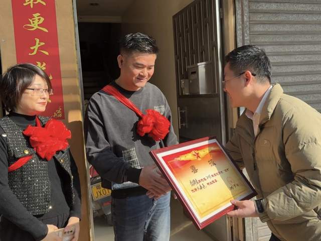 新年伊始,喜報頻傳。近日,沙溪鎮(zhèn)陸續(xù)收到多份立功受獎喜報,目前已收悉10位現(xiàn)役軍人榮獲2025年度“四有”優(yōu)秀士兵(軍官)。為弘揚擁軍優(yōu)屬光榮傳統(tǒng),營造“一人參軍、全家光榮”的濃厚氛圍,自1月6日起,沙溪鎮(zhèn)黨委、鎮(zhèn)政府領導率領退役軍人服務中心、武裝部及各村(社區(qū))負責人組成慰問組,分批登門為優(yōu)秀士兵家屬送上滿載榮譽的喜報和新春祝福。 慰問現(xiàn)場,慰問組為軍屬佩戴光榮紅花,宣讀喜報,詳細介紹士兵在部隊的優(yōu)異表現(xiàn),對軍屬們默默支持國防事業(yè)、鼓勵親人建功軍營表示衷心感謝。接過喜報的家屬們臉上洋溢著自豪與喜悅,表示將繼續(xù)做好堅強后盾,叮囑孩子在部隊安心服役、再立新功。
