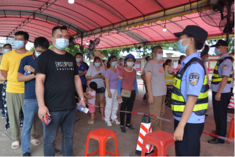 阜沙禁毒一線工作者在核酸檢測(cè)現(xiàn)場(chǎng)協(xié)助維持秩序。