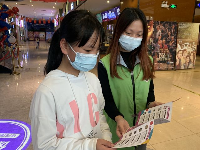 社工在影城擺設(shè)攤位