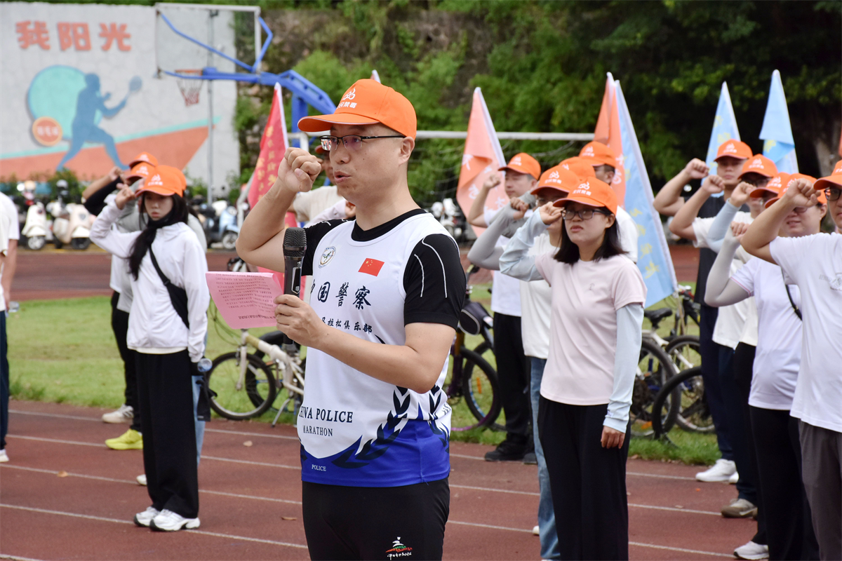 本活動(dòng)分為三個(gè)流程:首先,由阜沙中學(xué)學(xué)生代表宣讀禁毒倡議書。擲地有聲的禁毒倡議,聲聲入耳的禁毒理念,鞭策著廣大群眾始終銘記銷煙歷史,傳承禁毒使命。緊接著,鎮(zhèn)領(lǐng)導(dǎo)為熱心企業(yè)、單位授予牌匾,感謝社會(huì)各界力量參與禁毒工作,為阜沙禁毒貢獻(xiàn)自己的力量。最后,張濤代表鎮(zhèn)黨委政府致辭。他強(qiáng)調(diào),毒品預(yù)防教育在禁毒工作中起重要作用,要始終堅(jiān)持預(yù)防為主,將“不能、不敢、不愿吸販毒”的無(wú)毒理念扎根人民群眾心中,從源頭、從思想上根治毒品問(wèn)題。他指出,禁毒工作是一場(chǎng)馬拉松,希望大家燃放激情,保持耐力,積極投身禁毒工作,帶領(lǐng)廣大人民群眾共同抵制毒品,建設(shè)和諧穩(wěn)定、綠美新阜沙。隨后,張濤帶領(lǐng)所有人員宣誓,一聲聲鏗鏘有力的誓詞,讓禁絕毒品的使命初心永銘心中,讓腳下的步伐更加堅(jiān)定有力。伴隨著出發(fā)信號(hào)響起,騎行隊(duì)伍以車輪為畫筆,在夏日畫卷中勾勒出“健康人生,綠色無(wú)毒”的亮麗底色。