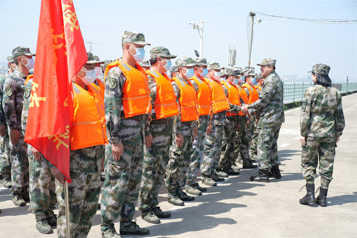 民眾街道河岸線長、水域廣,與港澳水運往來密切,針對當前嚴峻的岸線疫情防控形勢,相關部門以最大的決心、最有力的舉措,筑牢水上防疫安全屏障。劉燦瑩、李健一行趁民眾街道100多名民兵、公安民警交班集結之際,前往慰問。劉燦瑩要求大家進一步加強岸線巡查,加強“兩反”力度,切實從嚴做好防控工作。