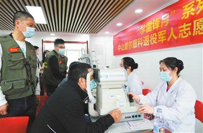 ▲醫(yī)務人員為退役軍人開展眼健康服務。(資料圖)