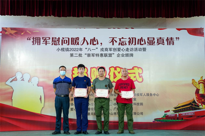 7月24日,小欖鎮(zhèn)舉行“擁軍慰問暖人心,不忘初心顯真情”——2022年“八一”愛心走訪活動啟動暨第二批“崇軍特惠聯(lián)盟”企業(yè)頒牌儀式。該鎮(zhèn)副鎮(zhèn)長鄧泳標、市退役軍人服務中心副主任高亞男及鎮(zhèn)公共服務辦、退役軍人服務中心、高沙社區(qū)、中山好人工作室相關負責人,小欖愛心助學團志愿者、愛心企業(yè)及第二批市“崇軍特惠聯(lián)盟”企業(yè)的代表以及部分優(yōu)秀退役軍人代表近100人參加了活動。