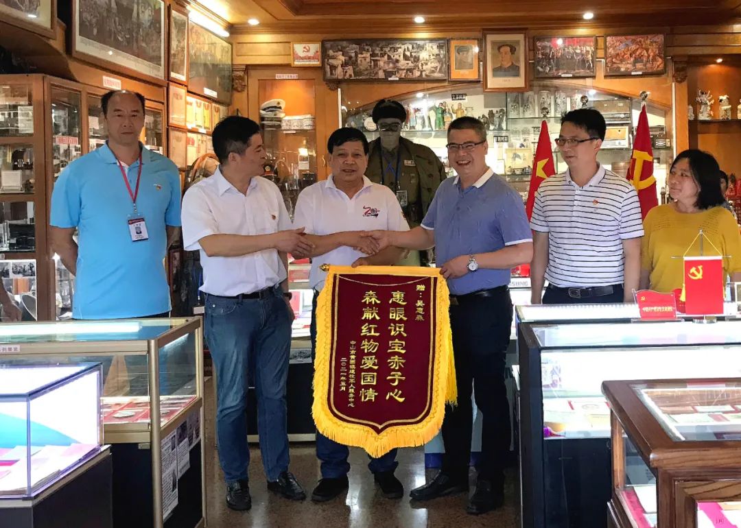 ▲黃圃鎮(zhèn)退役軍人服務(wù)中心向吳惠森贈送錦旗 座談會結(jié)束后,與會人員參觀了吳惠森“家庭軍事博物館”,開展“老兵永遠(yuǎn)跟黨走·重溫紅色故事”主題黨日活動,感悟當(dāng)今生活來之不易,銘記歷史、勿忘國恥,引導(dǎo)廣大退役軍人增強(qiáng)聽黨話、跟黨走的行動自覺,充分營造軍愛民,民擁軍,軍民魚水一家親的良好社會氛圍,提升黃圃鎮(zhèn)退役軍人工作服務(wù)水平,以良好的工作成效慶祝中國共產(chǎn)黨成立100周年。