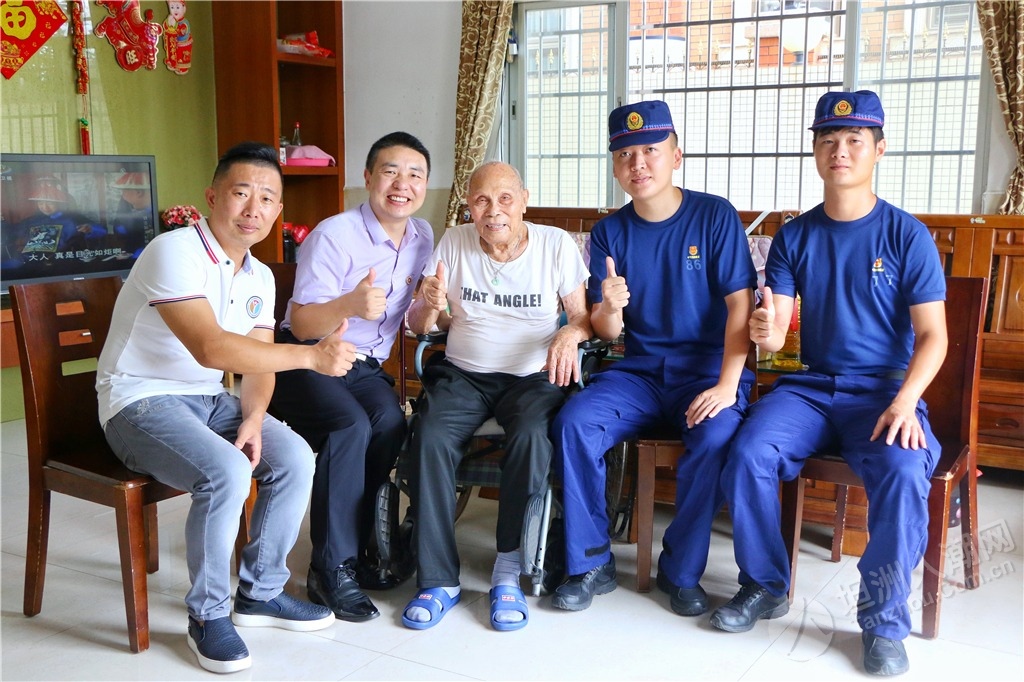隨后,慰問組還邀請參戰(zhàn)老兵鄭金洪走進中山市消防救援支隊坦洲大隊講述革命故事,給與會黨員干部和部分基干民兵送上了一堂生動、鮮活的紅色教育黨課,讓全體人員感受參戰(zhàn)老兵的精神洗禮。“在一次部隊作戰(zhàn)時,我和另一名貴州籍的戰(zhàn)友去攻打一個火力點,我們一起在山腳的一塊石頭處掩護,但根據(jù)我以往的作戰(zhàn)經(jīng)驗,我覺得這里不安全,于是趕緊對他說不要待在那塊石頭那,也不要站立,趕緊滾到下面的公路去;好在他聽從我的命令后,迅速地做出反應。當我們到達安全地方時,長舒一口氣,一直聽到有子彈嗖嗖嗖地從那塊石頭附近穿梭而過;而那位戰(zhàn)友感慨地跟我說‘班長,好在你迅速做出反應,不然我在那不是受傷就是死了?!编嵔鸷橐杂H身經(jīng)歷聲情并茂地向大家講述了當年戰(zhàn)火紛飛的戰(zhàn)斗經(jīng)歷。 ▲慰問組一行聆聽烈士遺屬陳北根講述他父親生前與敵斗爭的英雄故事。