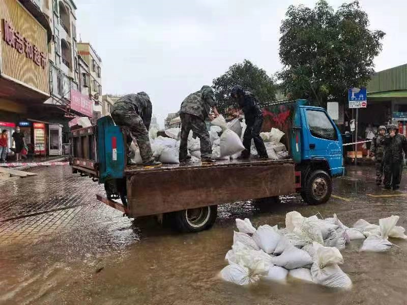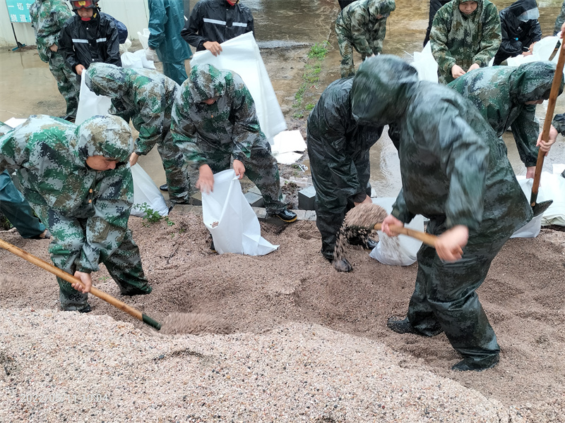 “我們已做好充分準(zhǔn)備,手電筒、救生衣、雨衣、膠鞋等防汛物資已準(zhǔn)備就緒,24小時(shí)防汛值班,隨時(shí)待命,確保防汛工作有序進(jìn)行?!蔽骞鹕轿溲b部相關(guān)工作人員呂兆彬介紹,上午9時(shí)許,南橋新村出現(xiàn)內(nèi)澇情況,村里所屬民兵已就近動(dòng)員,前往現(xiàn)場(chǎng)參與處置。 同時(shí),中山軍分區(qū)要求各鎮(zhèn)街民兵應(yīng)急分隊(duì)迅速收攏人員,積極參與本鎮(zhèn)街、村防汛救災(zāi)工作,在防汛搶險(xiǎn)一線打響“保衛(wèi)戰(zhàn)”,全力以赴保障人民群眾生命財(cái)產(chǎn)安全。中山軍分區(qū)相關(guān)負(fù)責(zé)人介紹:“前幾天,我們都已經(jīng)指導(dǎo)各鎮(zhèn)街武裝部對(duì)防汛裝備器材進(jìn)行了檢修,并結(jié)合民兵應(yīng)急分隊(duì)集中輪訓(xùn)開展了防汛應(yīng)急演練?!?/p>  ▲圖為神灣鎮(zhèn)民兵在裝沙袋,準(zhǔn)備堵住內(nèi)澇道路。(通訊員 吳容照 攝)