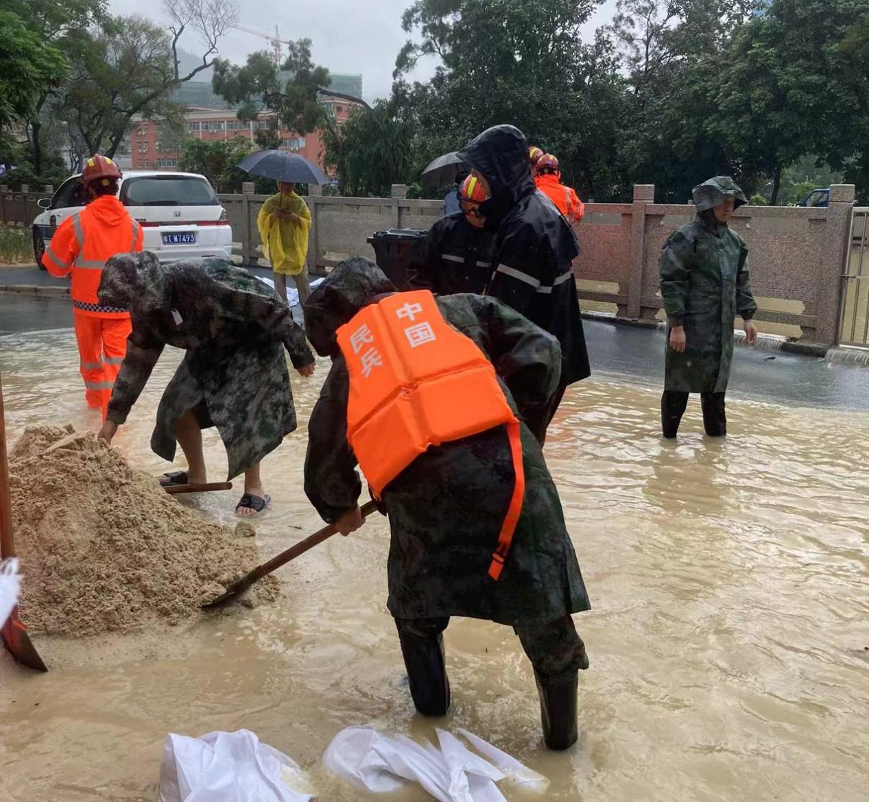 5月4日清晨,中山市氣象臺(tái)發(fā)布南部鎮(zhèn)街暴雨紅色預(yù)警,三鄉(xiāng)鎮(zhèn)、坦洲鎮(zhèn)、神灣鎮(zhèn)等地區(qū)出現(xiàn)3小時(shí)100毫米以上降雨。受強(qiáng)降雨影響,中山部分鎮(zhèn)街出現(xiàn)內(nèi)澇和水浸。在中山市、鎮(zhèn)兩級(jí)三防指揮部統(tǒng)一指揮下,三鄉(xiāng)鎮(zhèn)人民武裝部、退役軍人服務(wù)中心第一時(shí)間啟動(dòng)搶險(xiǎn)救災(zāi)預(yù)案,組織各村(社區(qū))民兵應(yīng)急分隊(duì)和退役軍人紅旗志愿服務(wù)隊(duì)嚴(yán)陣以待。 4日上午9時(shí)30分,中山市擁軍支前紅旗服務(wù)隊(duì)啟動(dòng)應(yīng)急響應(yīng)預(yù)案,20名隊(duì)員已全部處于待命狀態(tài);上午10時(shí)完成第一梯隊(duì)10名隊(duì)員集結(jié),配備配拖車裝備、快艇一艘、沖鋒舟兩艘、激流馬甲25件,油鋸、繩索、對(duì)講機(jī)一批,同時(shí)與中山市應(yīng)急部門保持聯(lián)系,隨時(shí)準(zhǔn)備開展救援工作。 4日上午10時(shí)30分,五桂山街道人民武裝部、退役軍人服務(wù)中心等部門組織20余名民兵、退役軍人及應(yīng)急救援志愿者等力量為南橋新村10余戶受災(zāi)群眾裝填沙袋堵門防止進(jìn)水,全力筑牢防汛安全線。 五桂山街道民兵、退役軍人及應(yīng)急救援志愿者等力量為南橋新村10余戶受災(zāi)群眾裝填沙袋堵門防止進(jìn)水。通訊員供圖