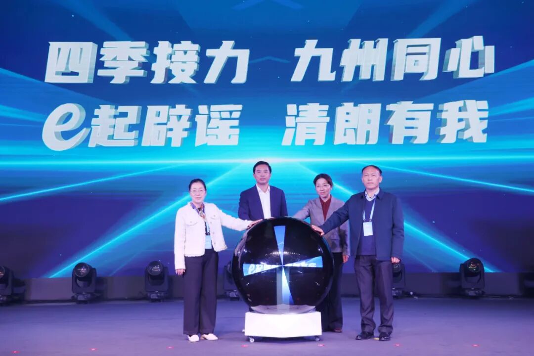四季接力,九州同心;e起辟謠,清朗有我!第四季活動(dòng)現(xiàn)場播放了2025網(wǎng)絡(luò)辟謠沙龍回顧視頻,再現(xiàn)了活動(dòng)從河南的文明之源啟程,穿越廣西的山水清朗,沐浴齊魯?shù)娜屣L(fēng)信義,最后相聚在“雄奇山水、新韻重慶”。 隨著河南省委網(wǎng)信辦副主任李麗、廣西壯族自治區(qū)黨委網(wǎng)信辦二級(jí)巡視員肖珊、山東省委網(wǎng)信辦總工程師赫叢慶、重慶市委網(wǎng)信辦副主任魏春代表四地網(wǎng)信辦點(diǎn)亮“網(wǎng)絡(luò)辟謠同心圓”,標(biāo)志著2025網(wǎng)絡(luò)辟謠沙龍圓滿收官。