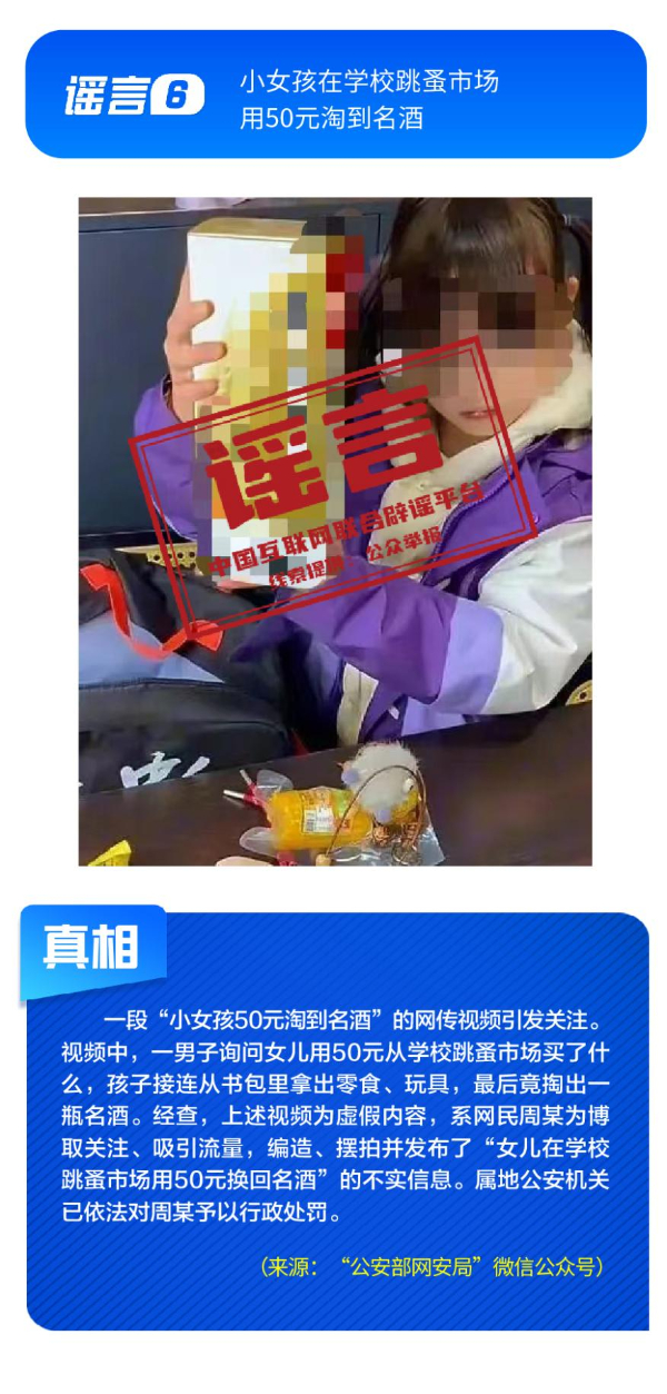 社會民生領(lǐng)域謠言引發(fā)不當炒作。“小女孩在學校跳蚤市場用50元淘到名酒”的視頻,實為擺拍炒作,虛構(gòu)“撿漏”情節(jié)博取流量;“某奶茶品牌疑似擦邊毒品”蹭炒網(wǎng)上熱點,似是而非、夸大其辭的說法對企業(yè)合法經(jīng)營造成困擾,也引發(fā)公眾不必要的焦慮;“微信好友數(shù)量過多會被封號”系對平臺運營機制的無端猜測,利用網(wǎng)民對平臺規(guī)則的陌生進行炒作,還可能給黑灰產(chǎn)帶來可乘之機。