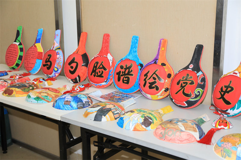 中國共產(chǎn)黨成立100周年標(biāo)識、井岡山勝利會師、南昌起義、嘉興游船上舉行的中共一大、萬里長征路……分享會現(xiàn)場,刻畫了一個個黨史故事的木瓢排列成行,十分引人注目?!斑@是國家級非物質(zhì)文化遺產(chǎn)——馬勺臉譜。它是陜西的傳統(tǒng)民間藝術(shù),以馬勺作‘紙’,將社火臉譜以彩繪的形式繪制在上面。”馬勺臉譜傳承者、沙溪中學(xué)老師馬世杰介紹。作為一名美術(shù)老師,馬世杰通過民間藝術(shù)的再創(chuàng)新來引導(dǎo)學(xué)生學(xué)習(xí)黨史,在他的帶領(lǐng)下,沙溪中學(xué)的學(xué)生將南粵特色、中山元素、國風(fēng)動漫等融入馬勺臉譜的創(chuàng)作中。“繪制黨史故事前,我們查閱了大量資料,并向?qū)<覍W(xué)者請教,在創(chuàng)作中引導(dǎo)學(xué)生們了解、學(xué)習(xí)黨史。”